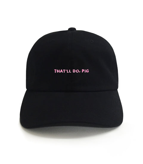 • Black 6-Panel Dad Hat/Light-Pink Thread