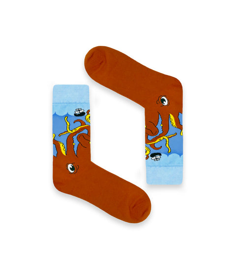 • printed socks with giant octopus design