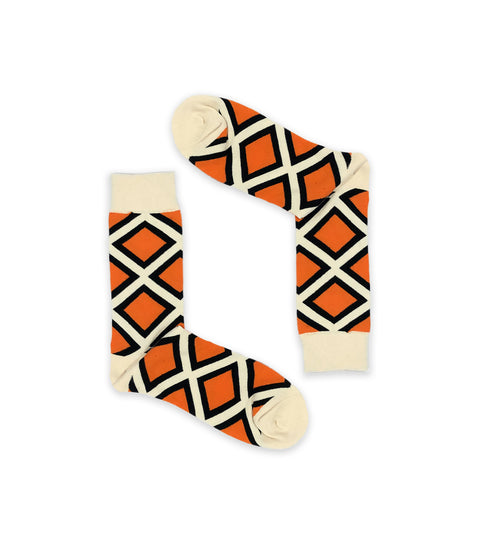 • printed socks with orange square tile design